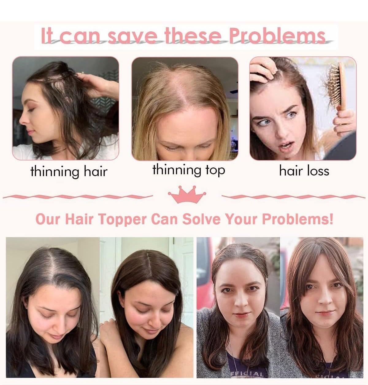 【Dodává objem】 Vhodné pro ženy s řídkými, šedivými, bílými vlasy nebo vlasy špatné kvality. Tato vlasová ozdoba je navržena tak, aby bezproblémově splynula s vašimi přirozenými vlasy a dodala vám plnější a objemnější vzhled. Lze ji snadno upravit tak, aby odpovídala struktuře a barvě vašich vlasů, a dodá vám tak přirozený a bezproblémový vzhled.